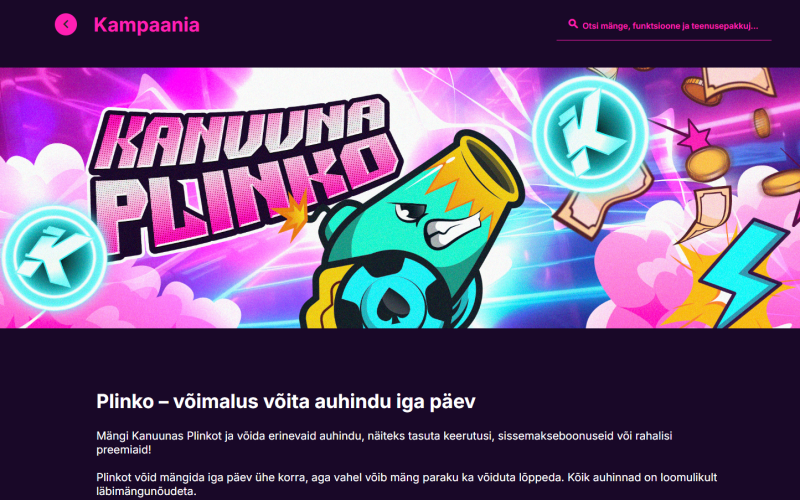 Kui boonuskood on olemas, sisesta see kas sissemakse tegemisel või kampaaniate lehel. Muidu aktiveeruvad pakkumised sageli automaatselt. Pea meeles Kanuuna boonuskoodi!